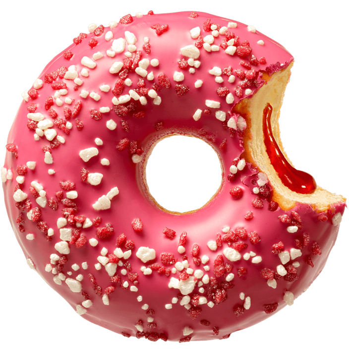 Oh so sweet strawberry glaze, royally filled with delicious strawberry jam! Why this fruity delight is dubbed the Berry White? It's also topped with heavenly soft marzipan nuggets and pink flavoured sugar pieces.