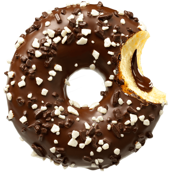Huuuge donut. Teeny-tiny country! A luxuriously dark delight proud of its sweet marzipan crunch, crispy choco drops and authentic Belgian chocolate glazing. It's even filled with choco! Anyone got a map?