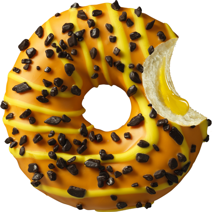 The next big revelation in donut fashion. Orange glaze, yellow stripes, and dark chocolate statement pieces. Work it, girl.