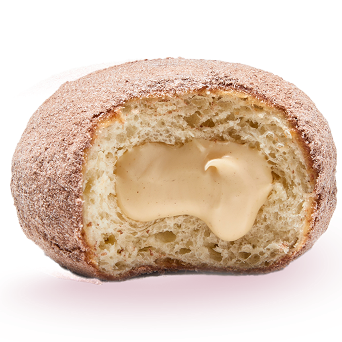 A soft dough with a deliciously creamy hazelnut filling and coated in cocoa powder.