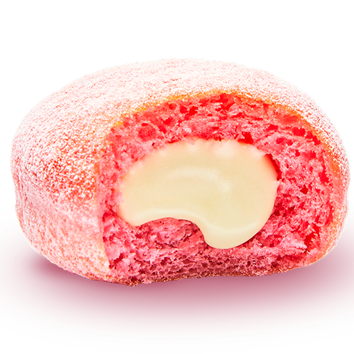 Take a dip into this pink-coloured dough hiding a deliciously creamy white chocolate pearl.